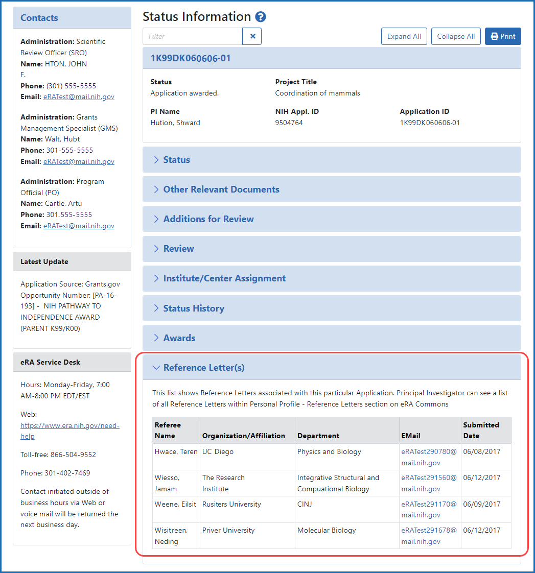 - NIH Grants & Funding site: Reference Letters page (additional information including instruction documents to provide to referees)