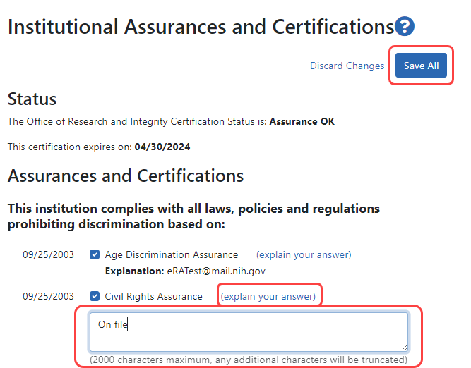 Editing the Assurances and Certifications