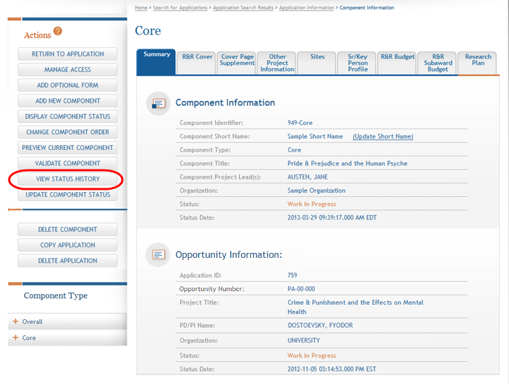 - Status CommentThis field displays comments regarding the component status update. Comments are optional when updating the status; therefore, this field may be blank.