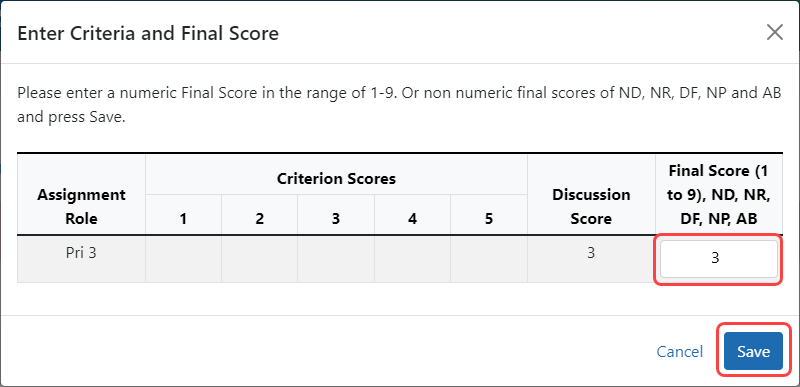 If a score has already been entered, it can be edited directly in the Discussion Score field . This may be desired after additional discussion comments are reviewed.
